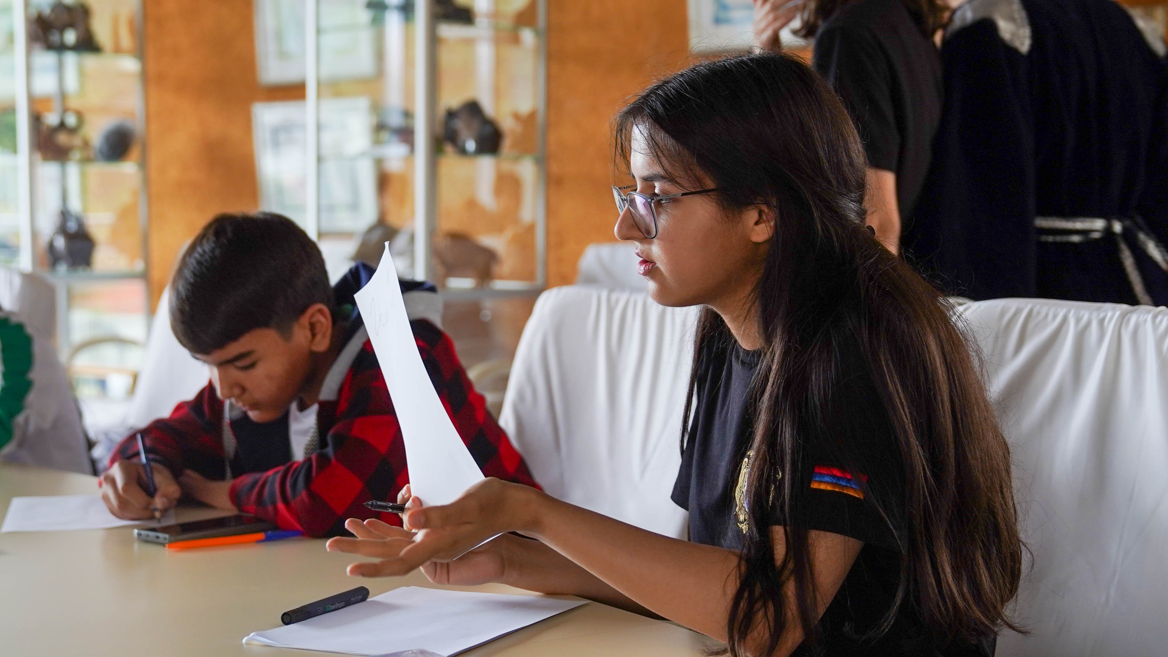 Школьники приняли участие в мастер-классах, подготовленных делегацией из Армении: изучили основы алфавита армянского языка, традиционные танцы и песни.