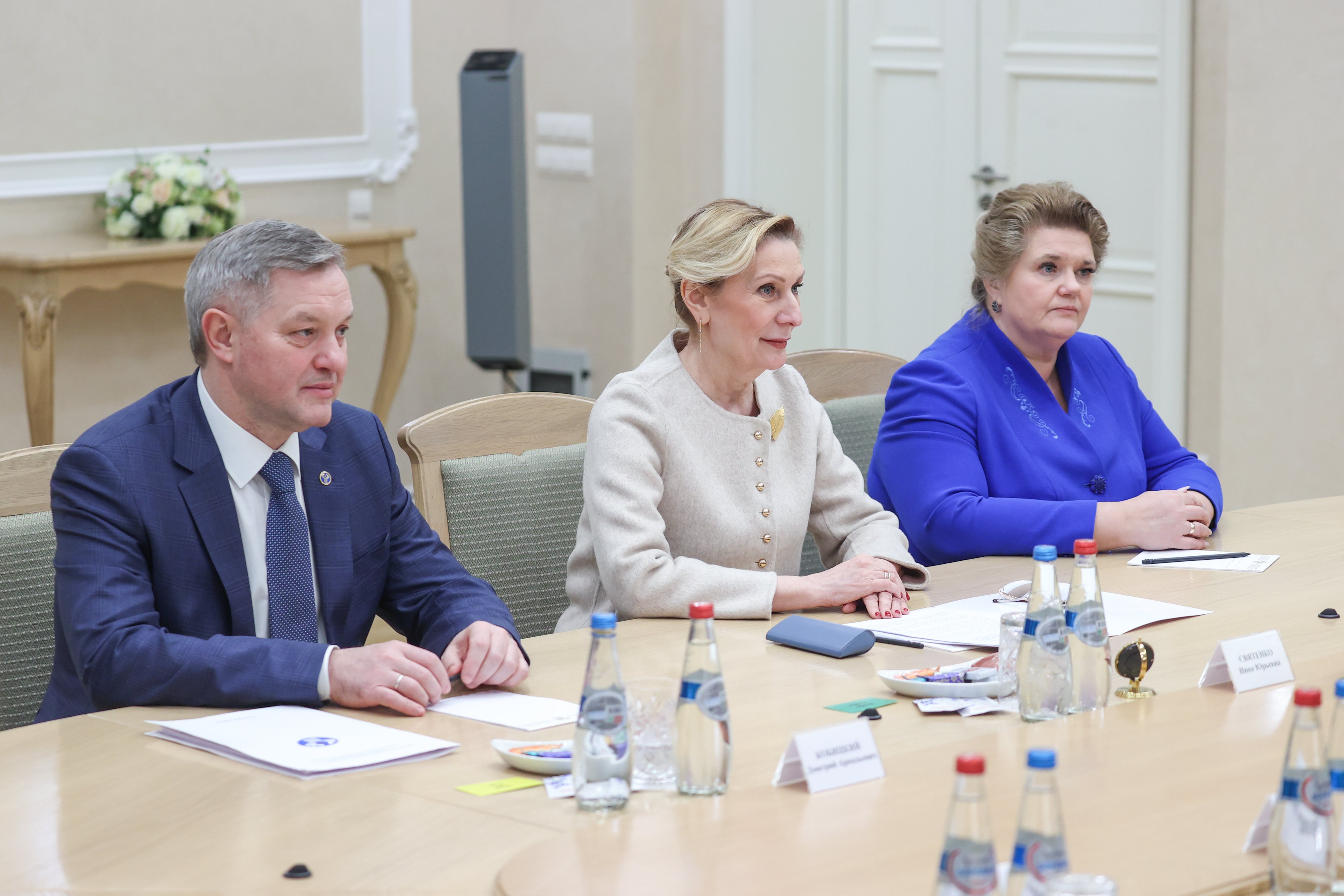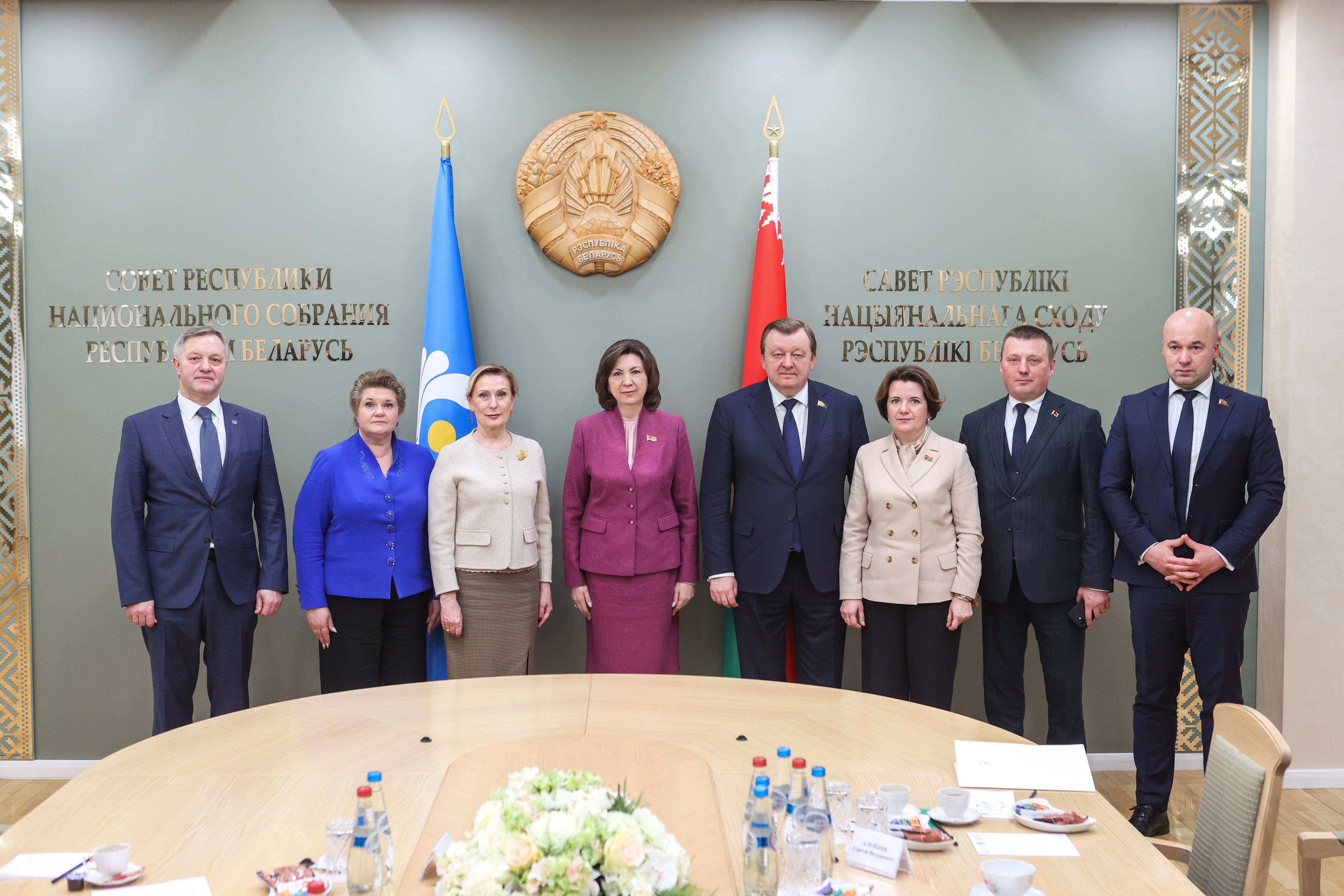 В Совете Республики Беларуси прошла встреча главы палаты Натальи Кочановой с заместителем Председателя Совета Федерации России Инной Святенко, Генеральным секретарем Совета МПА СНГ Дмитрием Кобицким и руководитель Национального центра исторической памяти при Президенте России Еленой Малышевой.