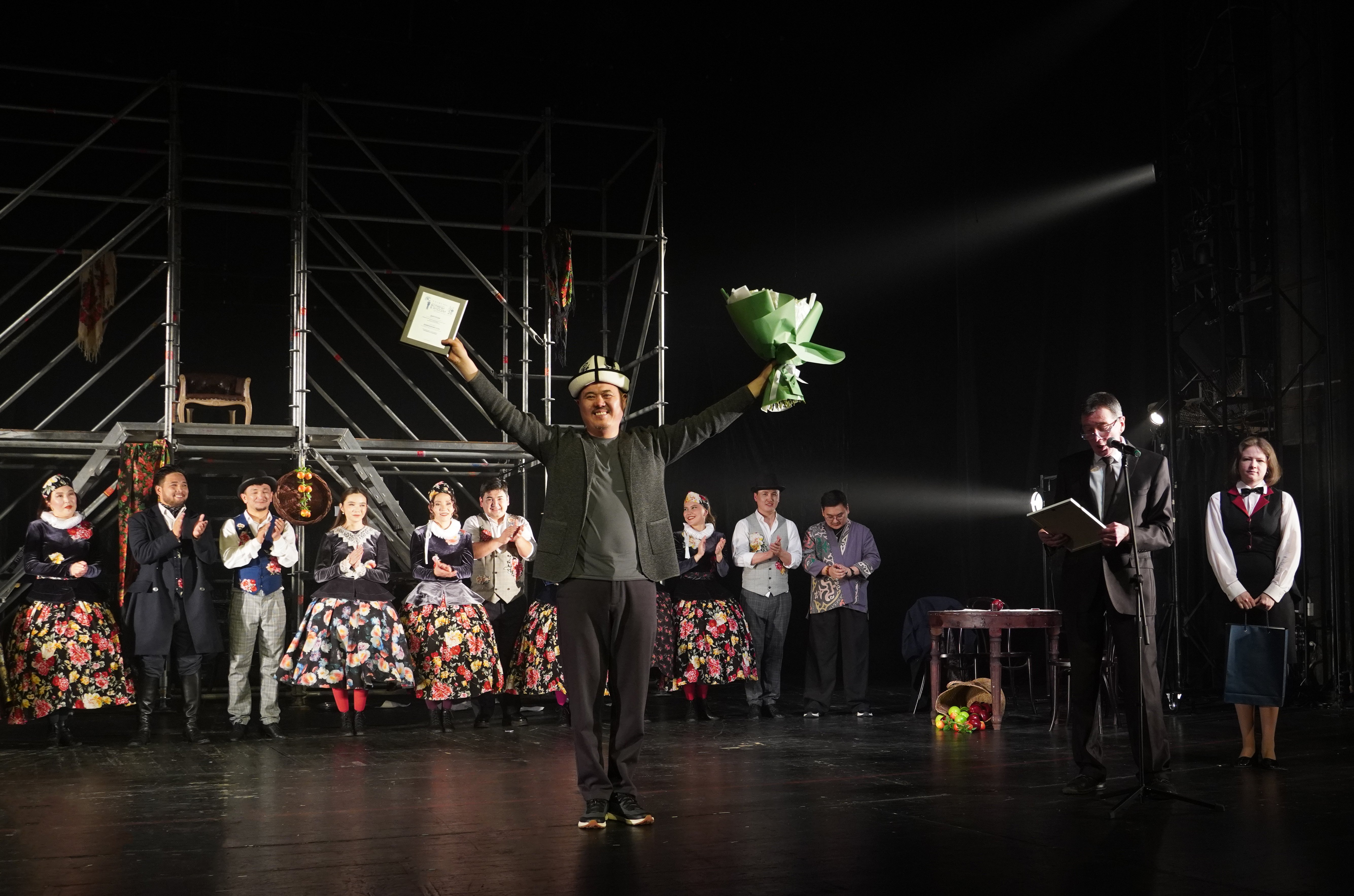 Открывшему фестиваль Городскому драматическому театру им. А. Умуралиева из Бишкека вручили памятные призы от МПА СНГ.