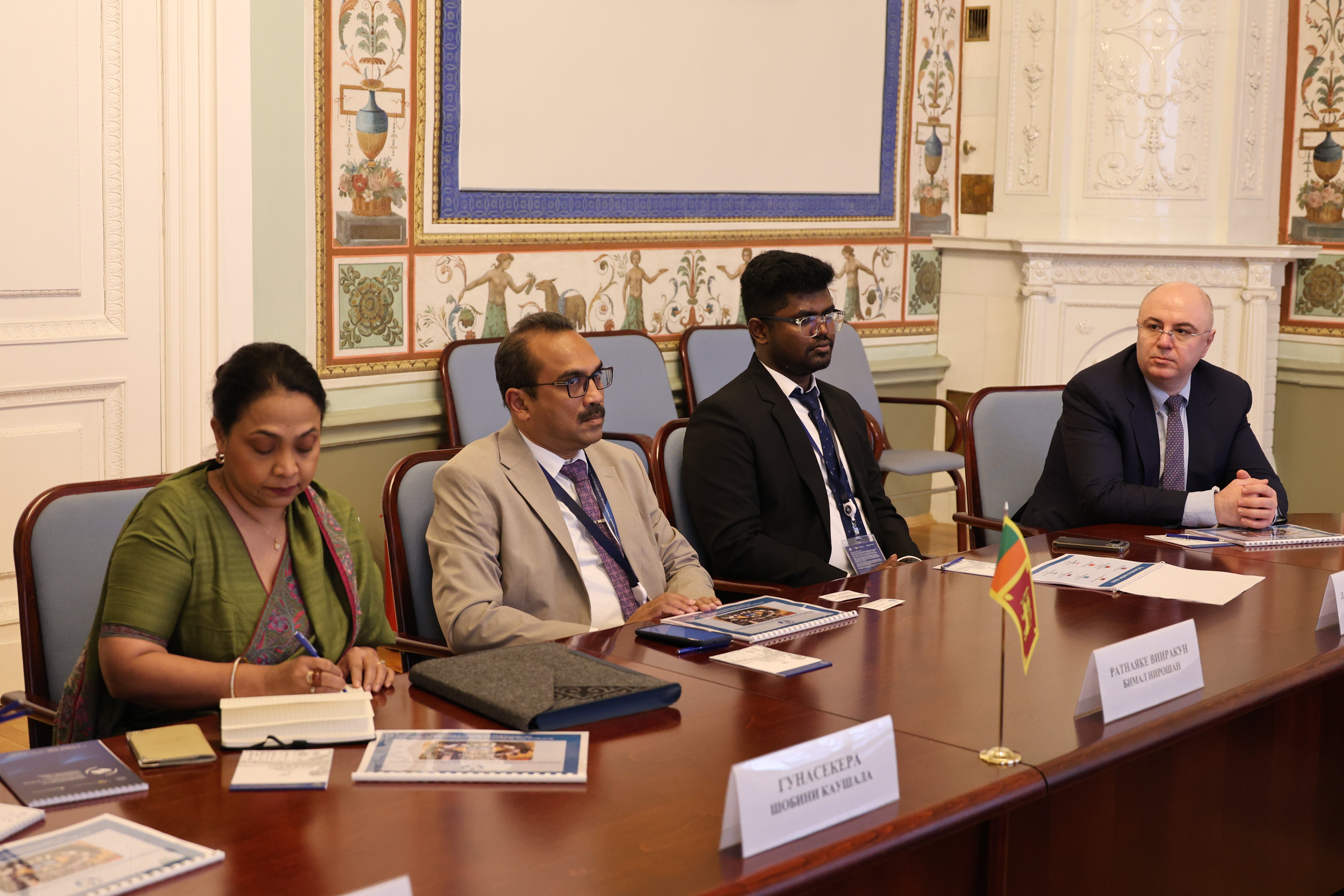 В состав делегации вошли Министр транспорта, автомобильных дорог и городского развития, лидер Парламента Шри-Ланки Бимал Нирошан, Чрезвычайный и Полномочный Посол Шри-Ланки в Российской Федерации Шобини Каушала и Почетный консул Шри-Ланки в Санкт-Петербурге Ваграм Захарян.