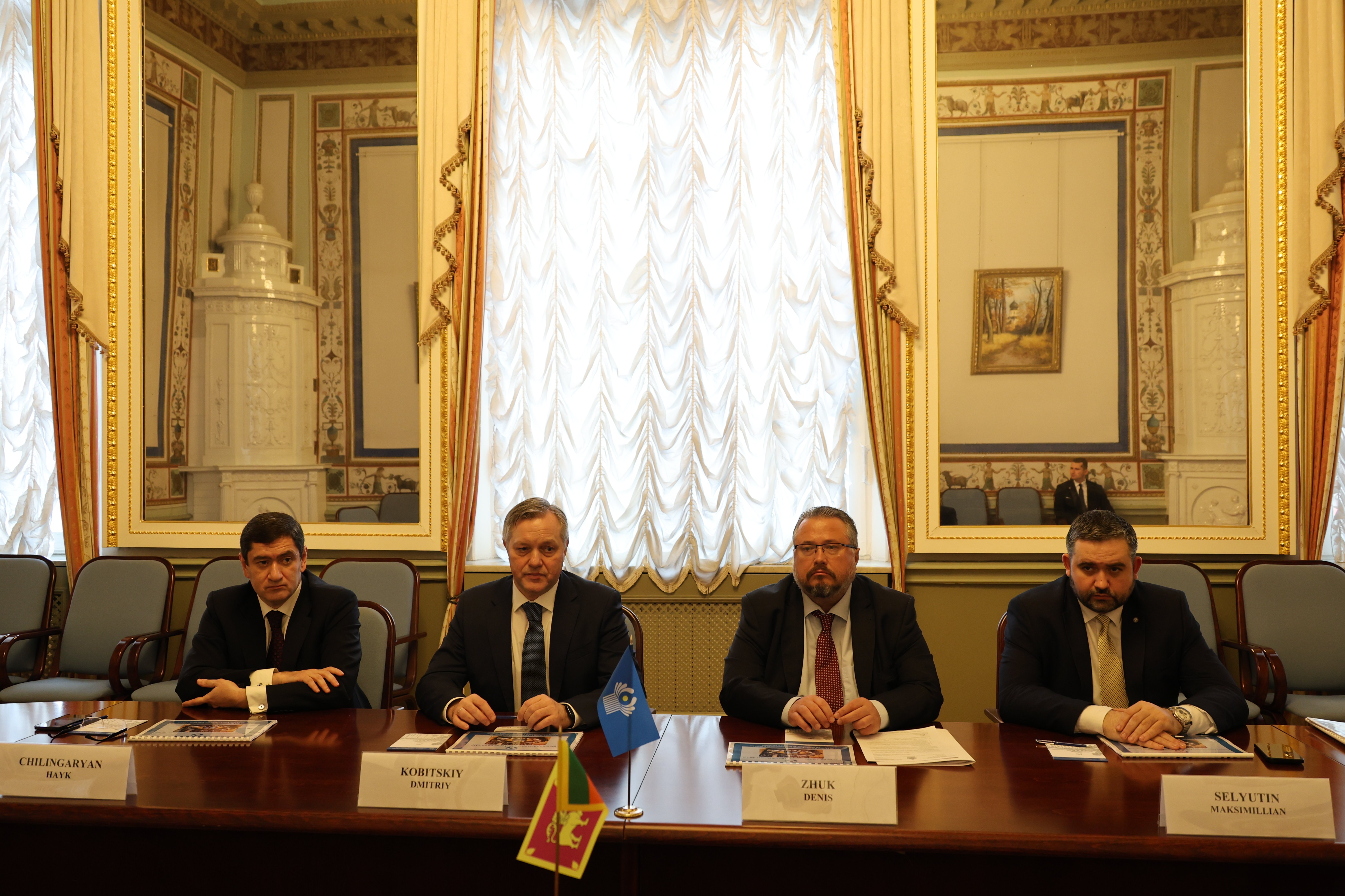 Участие во встрече приняли заместитель Генерального секретаря Совета Межпарламентской Ассамблеи – полномочный представитель Национального Собрания Армении в МПА Айк Чилингарян, начальник экспертно-аналитического управления Секретариата Совета МПА СНГ Денис Жук, начальник отдела внешних связей, секретарь Постоянной комиссии МПА СНГ по политическим вопросам и международному сотрудничеству Максимиллиан Селютин.