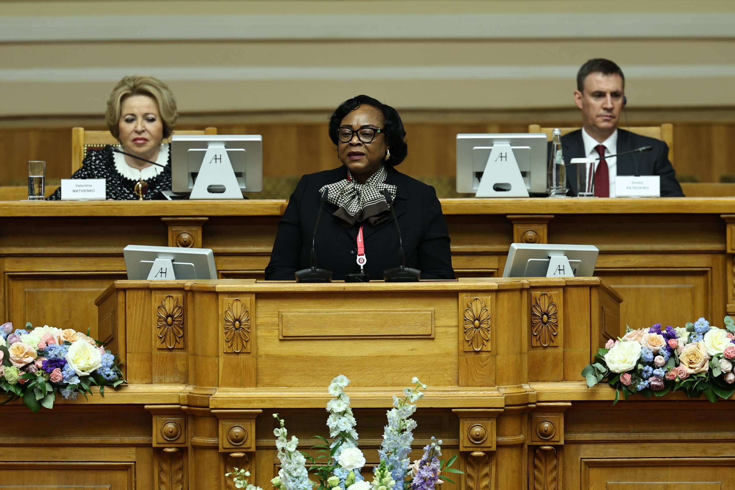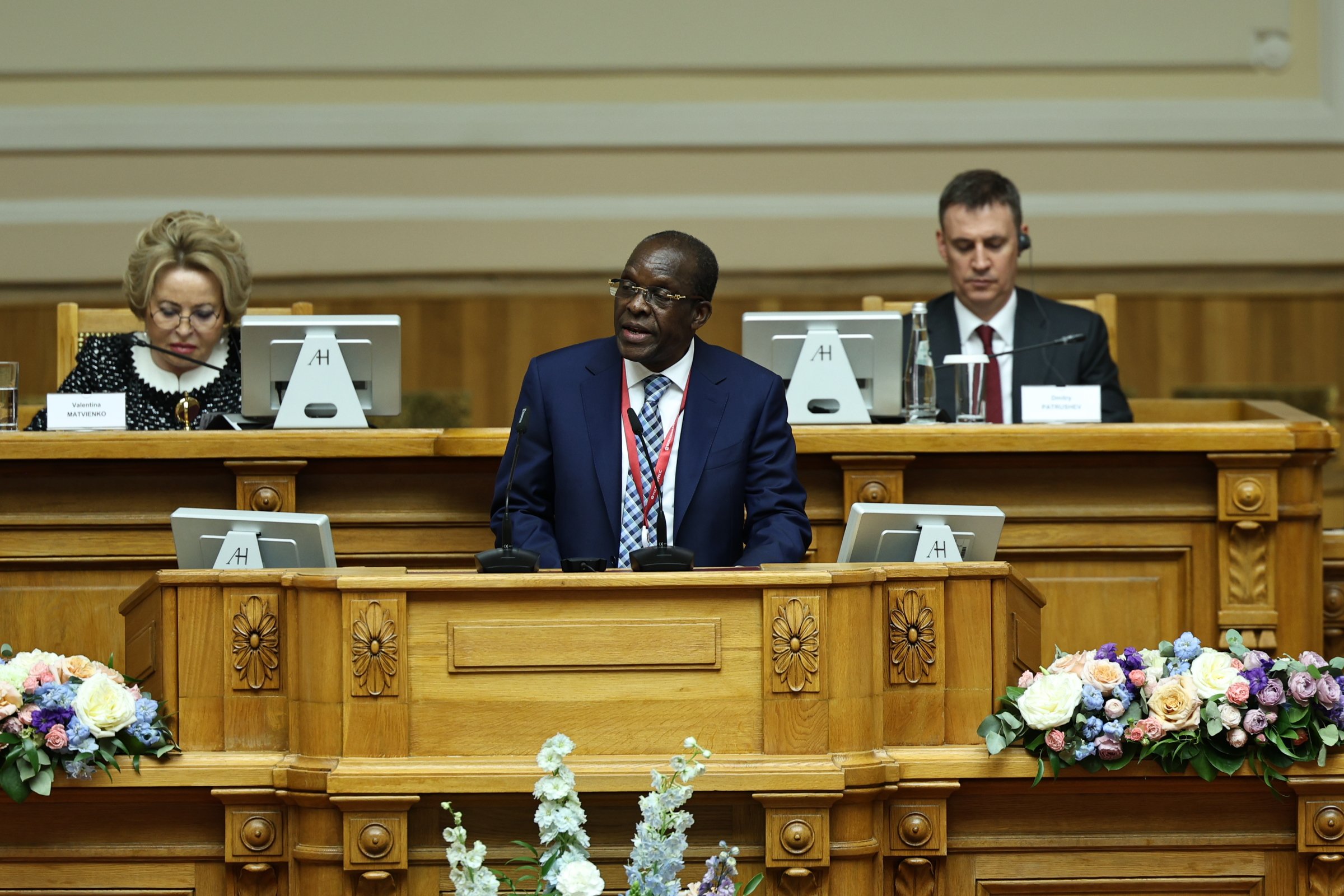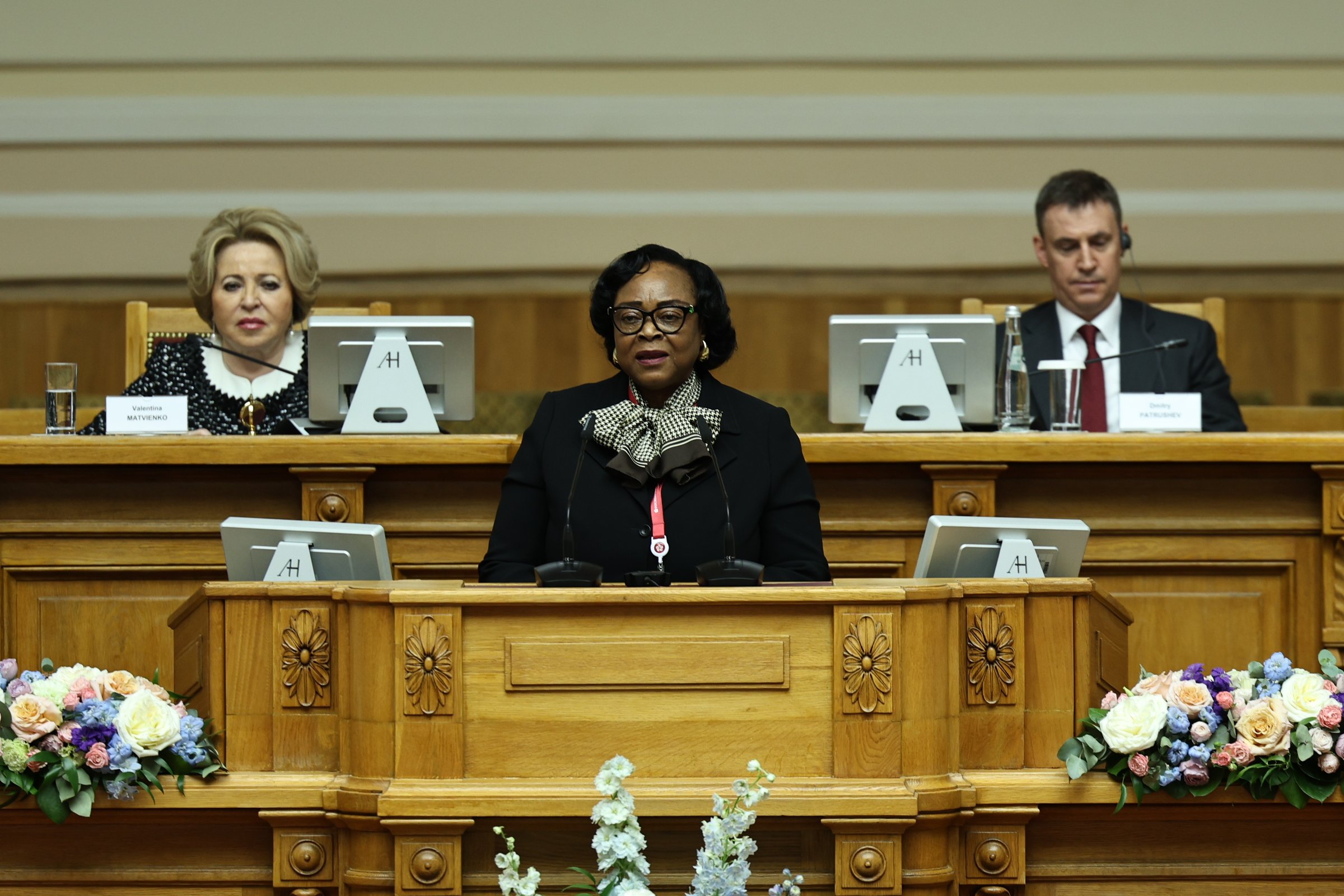 Видение экологической повестки на Африканском континенте представили Председатель Ассамблеи Республики Мозамбик Маргарида Талапа, Председатель Национального собрания Центральноафриканской Республики Симплис Матьё Саранджи, Председатель Сената Республики Бурунди Эммануэль Синзохагера, Председатель Парламента Республики Гана Албан Сумана Багбин, Председатель Сената Республики Экваториальная Гвинея Мария Тереса Эфуа Асангоно.