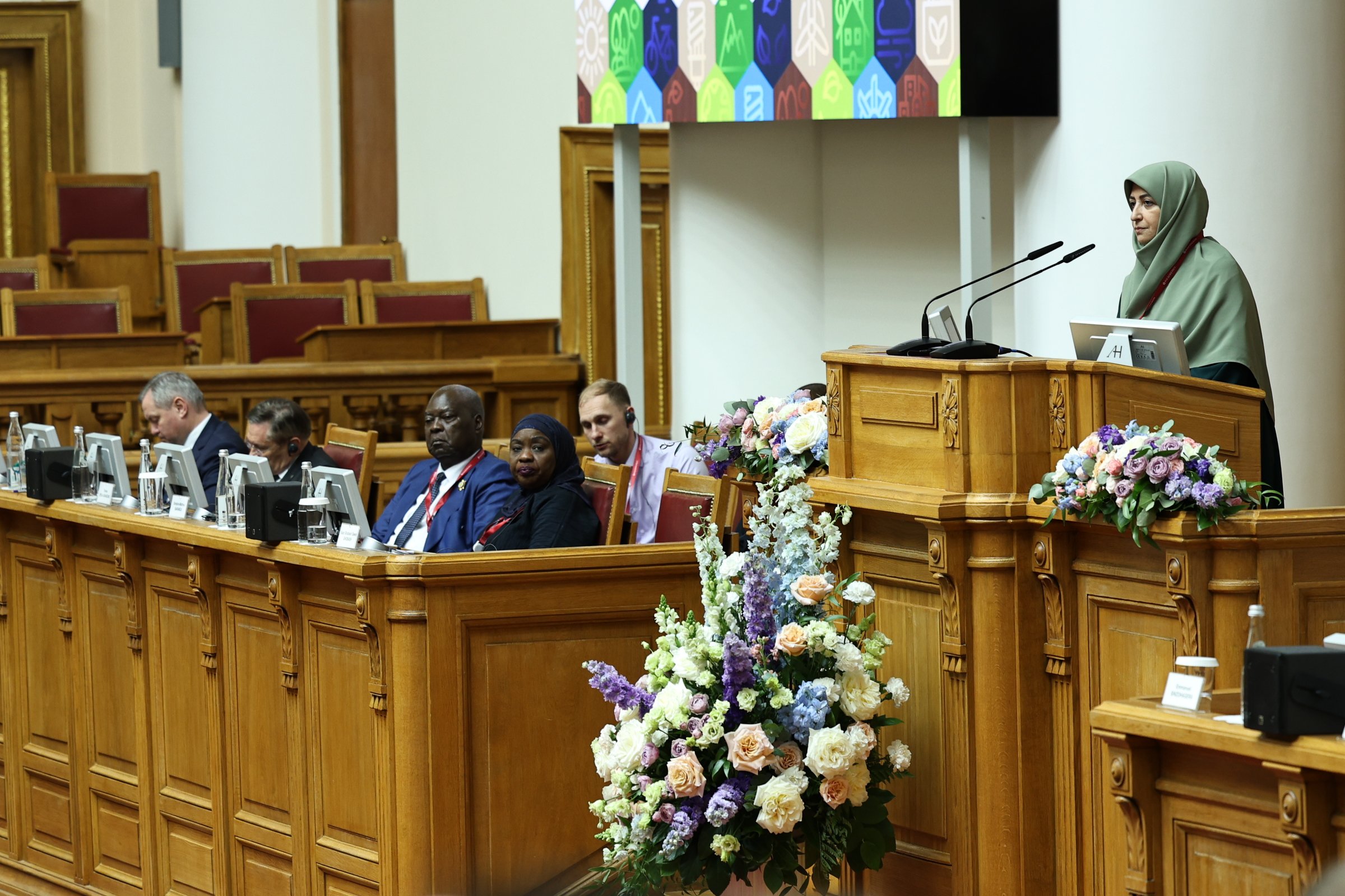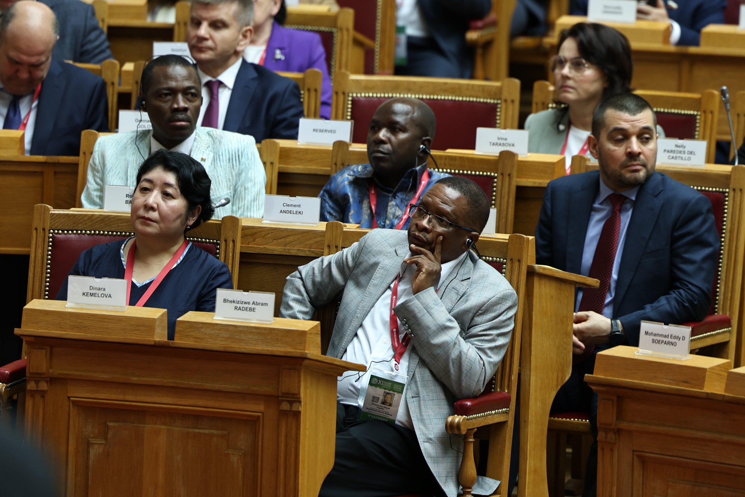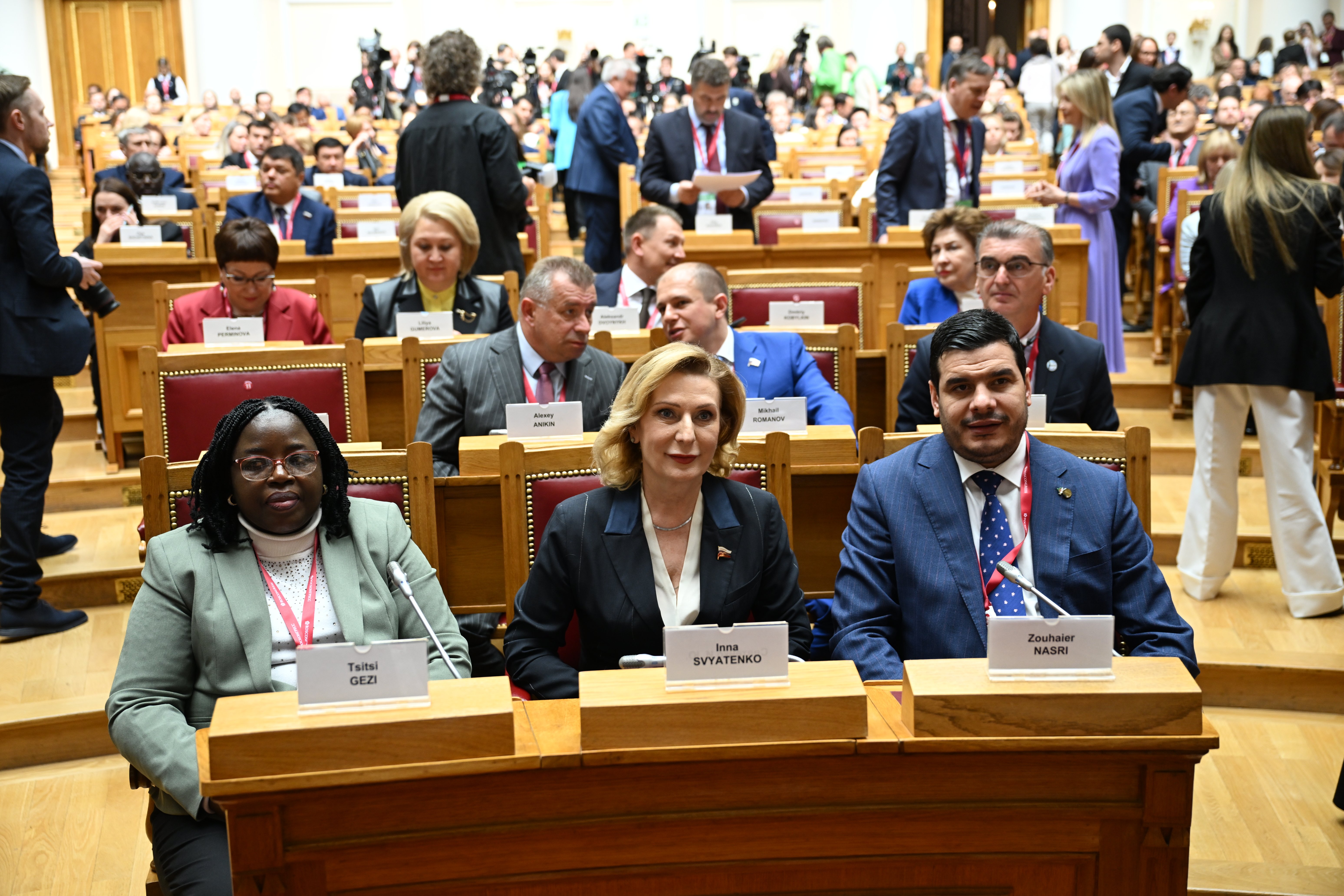 Видение экологической повестки на Африканском континенте представили Председатель Ассамблеи Республики Мозамбик Маргарида Талапа, Председатель Национального собрания Центральноафриканской Республики Симплис Матьё Саранджи, Председатель Сената Республики Бурунди Эммануэль Синзохагера, Председатель Парламента Республики Гана Албан Сумана Багбин, Председатель Сената Республики Экваториальная Гвинея Мария Тереса Эфуа Асангоно.